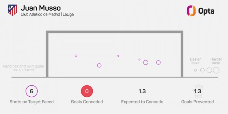 数据统计显示,穆索成为21世纪以来,首位在个人前四场西甲联赛中均保持零封的门将,他6次面对对手射正全部扑救成功。